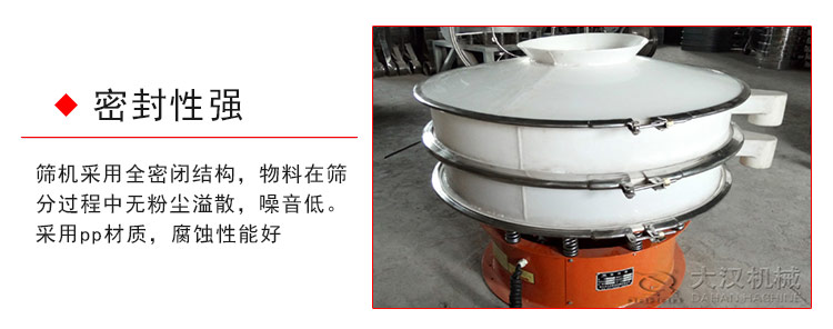 塑料震動篩采用聚丙烯材料,所以也叫做聚丙烯震動篩,是通過特殊的加工工藝制作的,非常適合篩分有酸堿性、腐蝕性的物料,從篩框、篩網和清網裝置完全采用非金屬材料,可以有效防止物料在篩分過程中和金屬接觸發生反應。