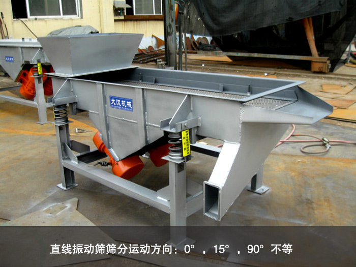 直線振動篩為了保障其物料的篩分效果,所以會有不同形式的篩分運動方向:0°,15°,90°不等。每個運動方向會有不同的作用,可以用于一般的篩分15°可用于精密篩分,用于微分高凝聚力的原料或含水率高的原料分級,90°則是除去原料中的異物,用于濕法分級。