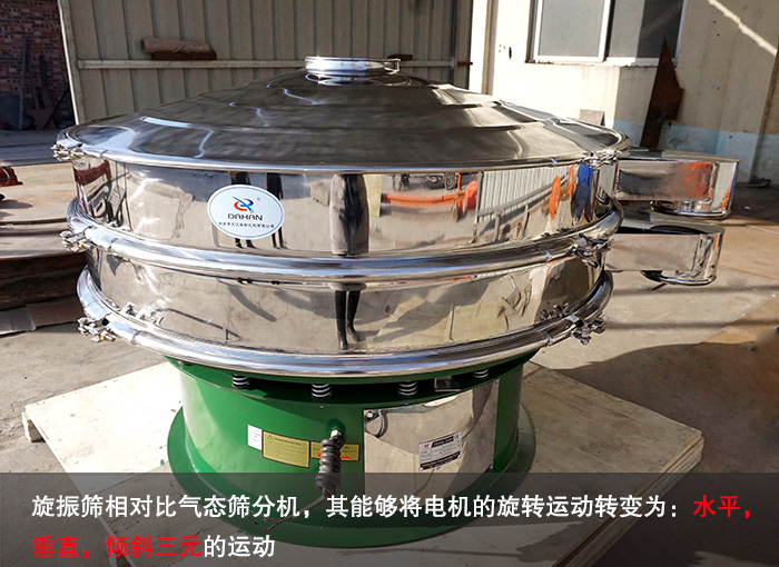 旋振篩相對比氣態(tài)篩分機(jī),其能夠?qū)㈦姍C(jī)的旋轉(zhuǎn)運動轉(zhuǎn)變?yōu)椋?span style="color:#ff8c00;">水平,垂直,傾斜三元的運動。其不僅提高了篩網(wǎng)的利用率而且,調(diào)節(jié)上,下兩端的相位角,使得物料在篩網(wǎng)上的運動軌跡發(fā)生變化,從而使紅薯淀粉可以進(jìn)行更加精細(xì)的篩分。