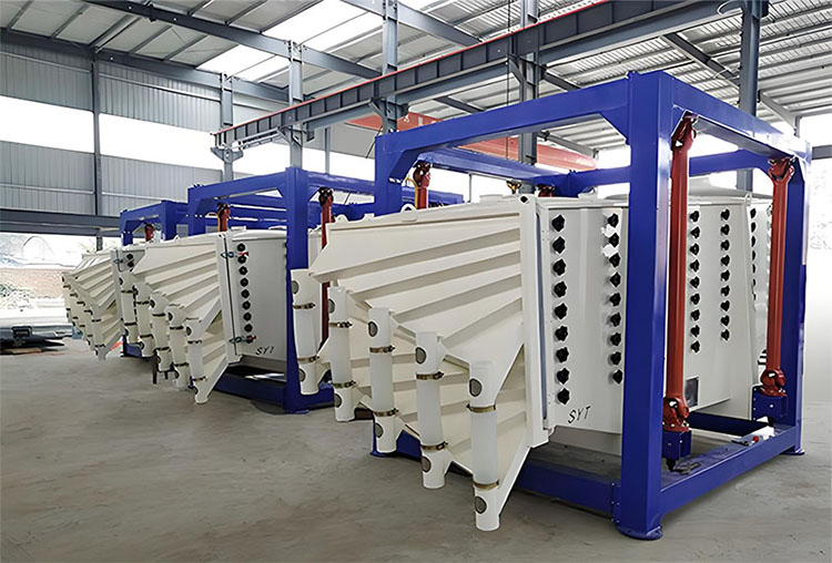 方形搖擺篩:是用于粒度在0.3mm-500目的石油壓裂砂(12-120目)、化工砂、石英砂、工業鹽、淀粉、鋰電池回收料等精細粉末的分級,篩面傾角0°-5°,單機產量可達60噸/小時,有1-13層篩網可選;常用于化工、食品、冶金、石油壓裂砂等行業,尤其適合易堵網或潮濕的顆粒、粉末物料。
